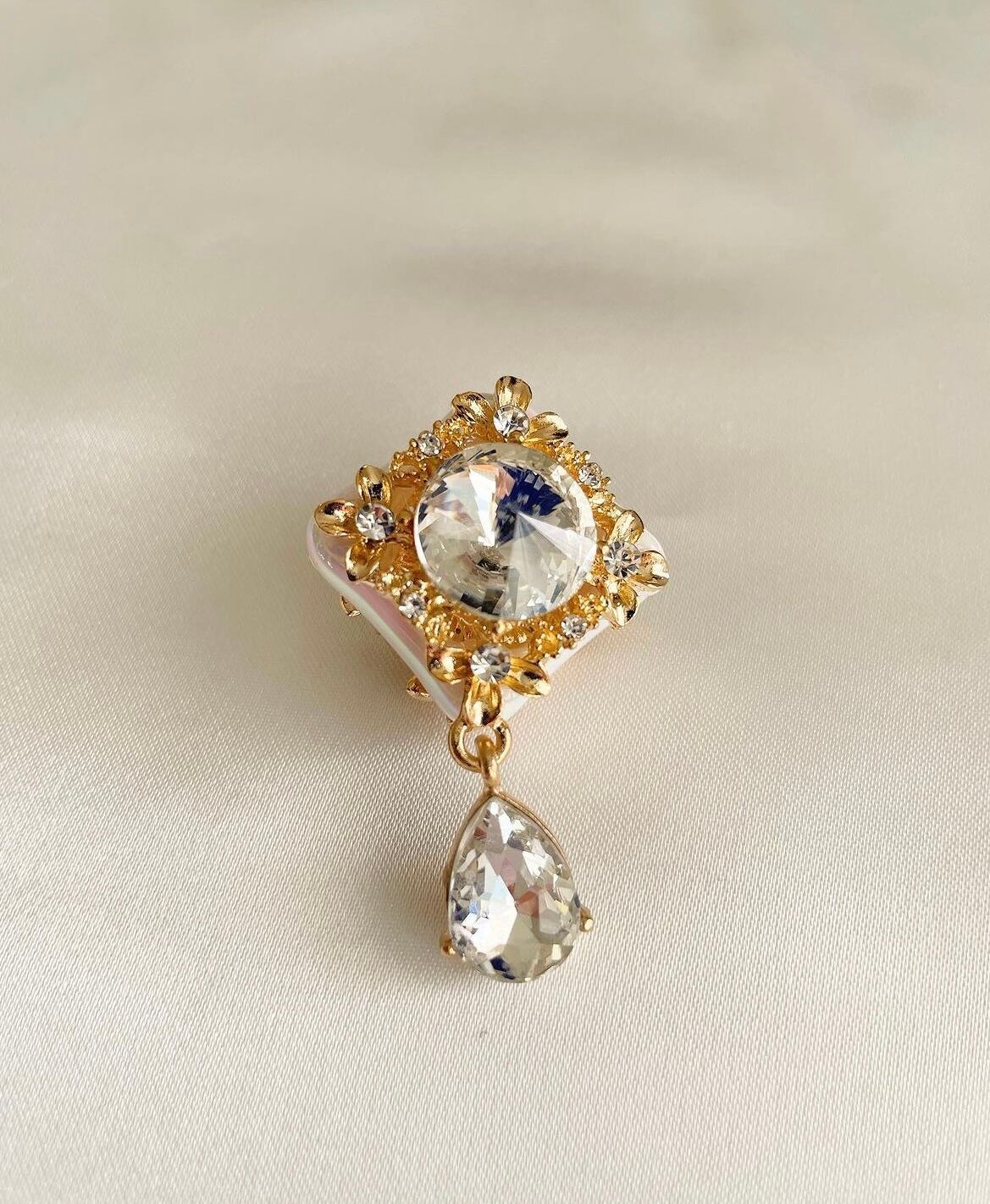 上部の四角のクールさと、キラキラ揺れる雫型のビーズの組み合わせがキラリと光ります。